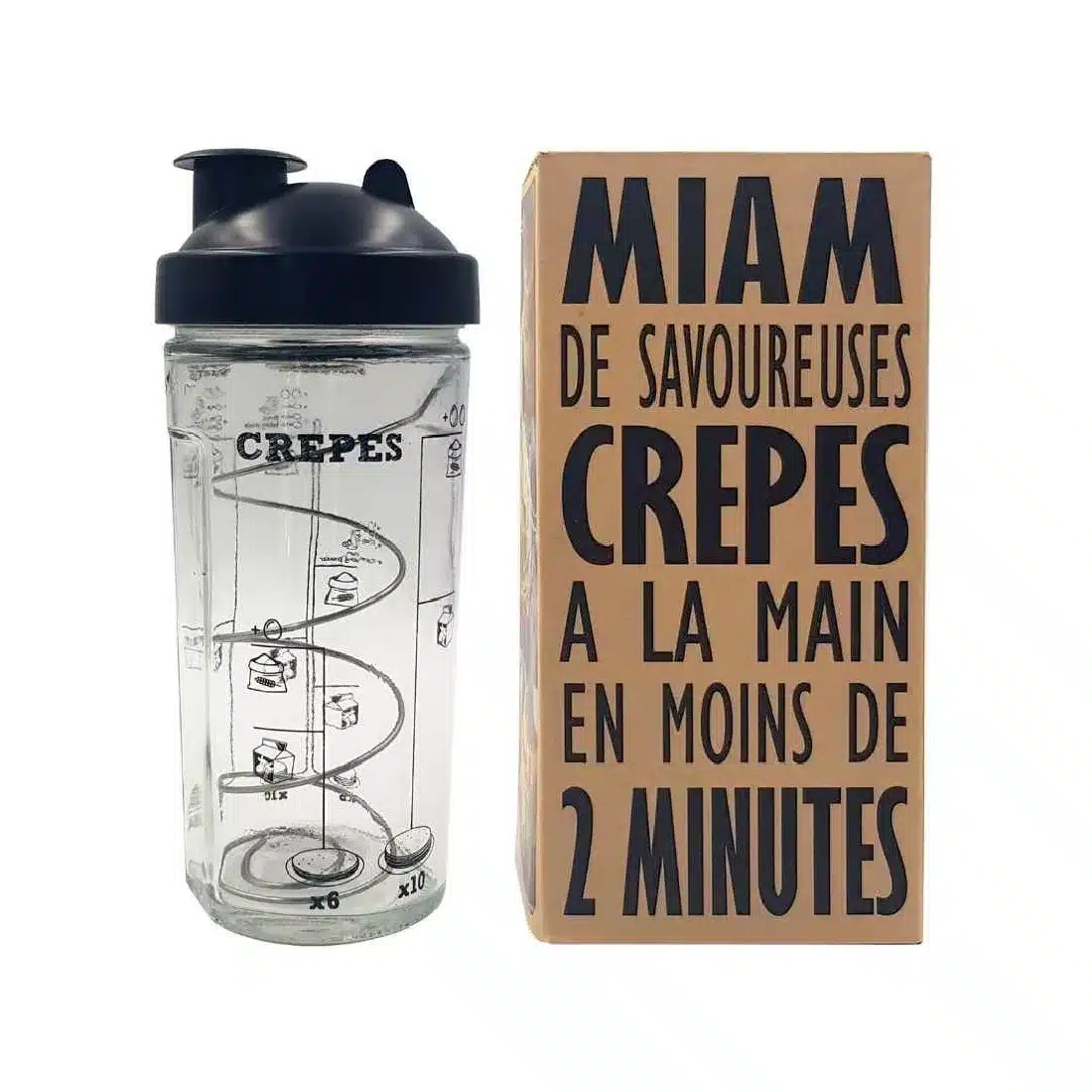 Un shaker en verre malin pour préparer des crêpes en quelques secondes, sans grumeaux ni ustensiles compliqués. Il suffit d’ajouter les ingrédients, de secouer, et c’est prêt !