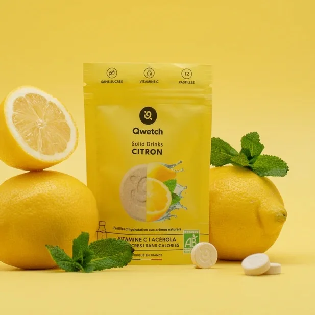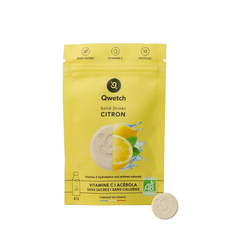 Booste ton hydratation avec les Solid Drinks Bio Qwetch ! Des pastilles à diluer pour une boisson vitaminée, sans sucre, sans calorie, et 100 % naturelle. Voir tous nos produits : Qwetch.