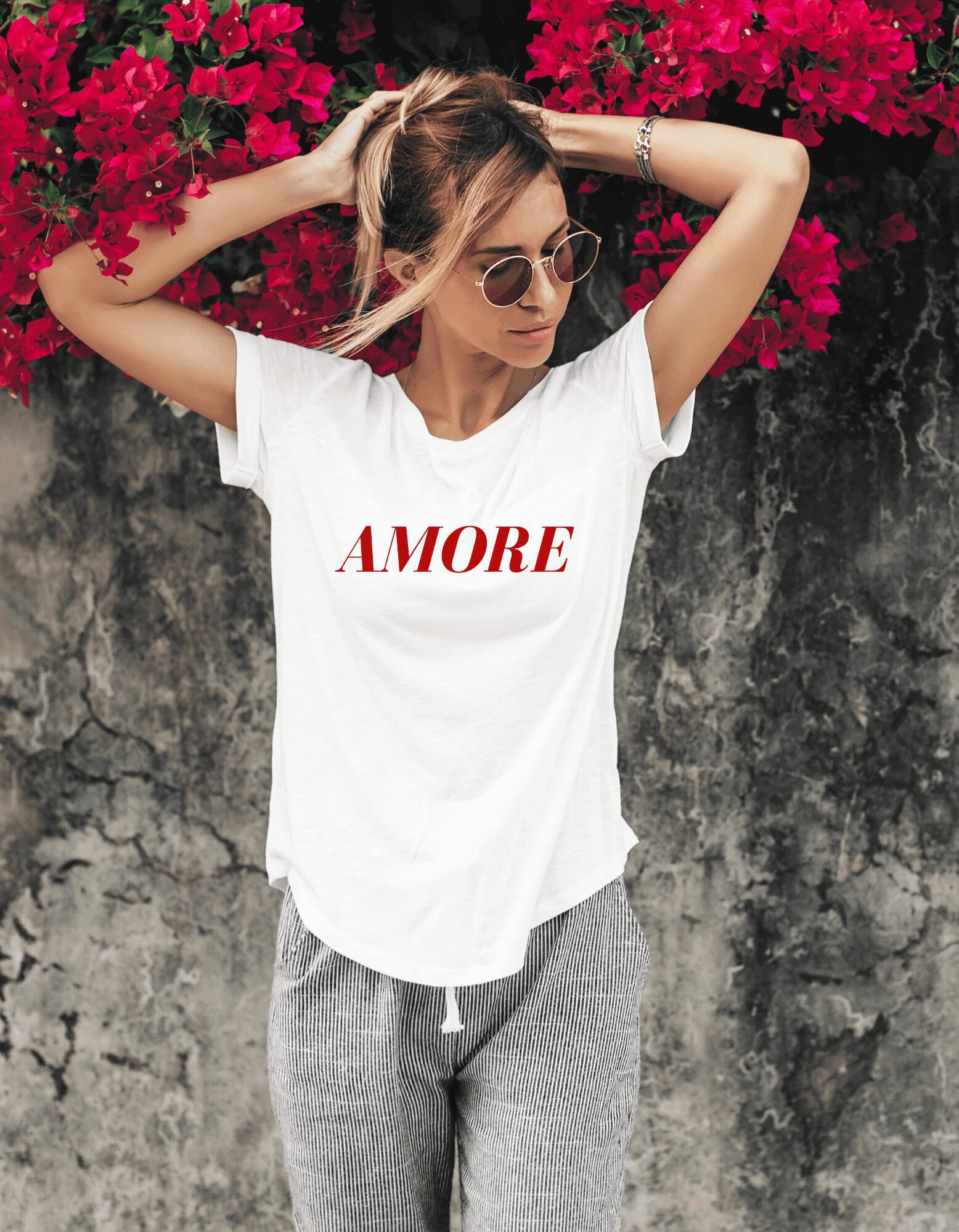 Ce modèle de t-shirt AMORE est un modèle qui chante l’amour en italien, on ne peut que craquer.