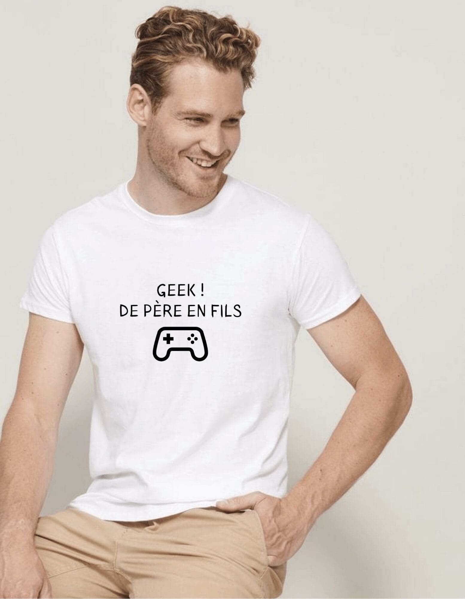Être Geek ça se cultive en famille et encore plus de père en fils. C’est pourquoi, TendancedeSan vous propose ce T-shirt Geek de père en fils à assortir avec votre petit twin. Craquez pour le col rond ou col V en 100% coton de haute qualité. La couleur du texte / motif est libre à vous de jouer !