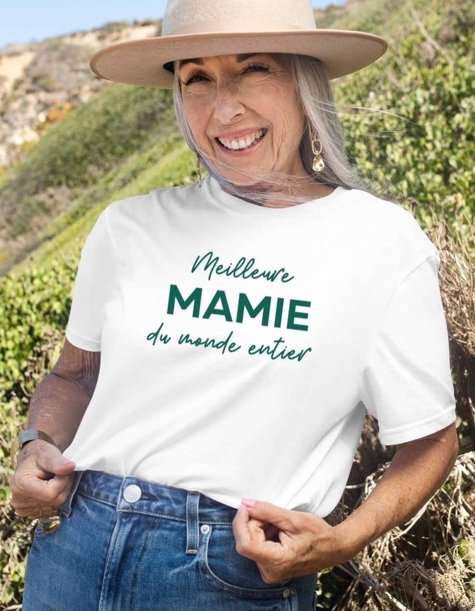 Envie d’offrir un cadeau avec un jolie message à l’attention de la meilleure des mamies, ce t-shirt meilleure mamie du monde en entier sera parfait. Et les occasions ne manquent pas de lui faire plaisir, comme son anniversaire, noël ou encore la fête des grands-mères.