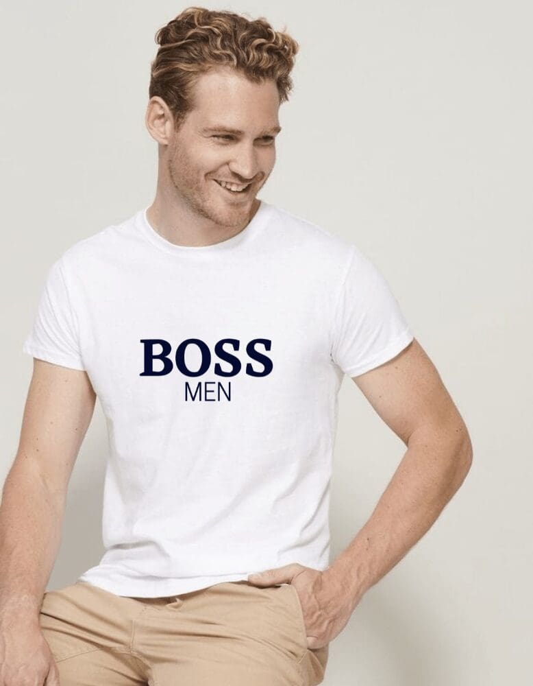 TendancedeSan vous propose ce t-shirt personnalisé BOSS MEN, simple et classe avec son écriture en velours ou pas à vous de choisir.