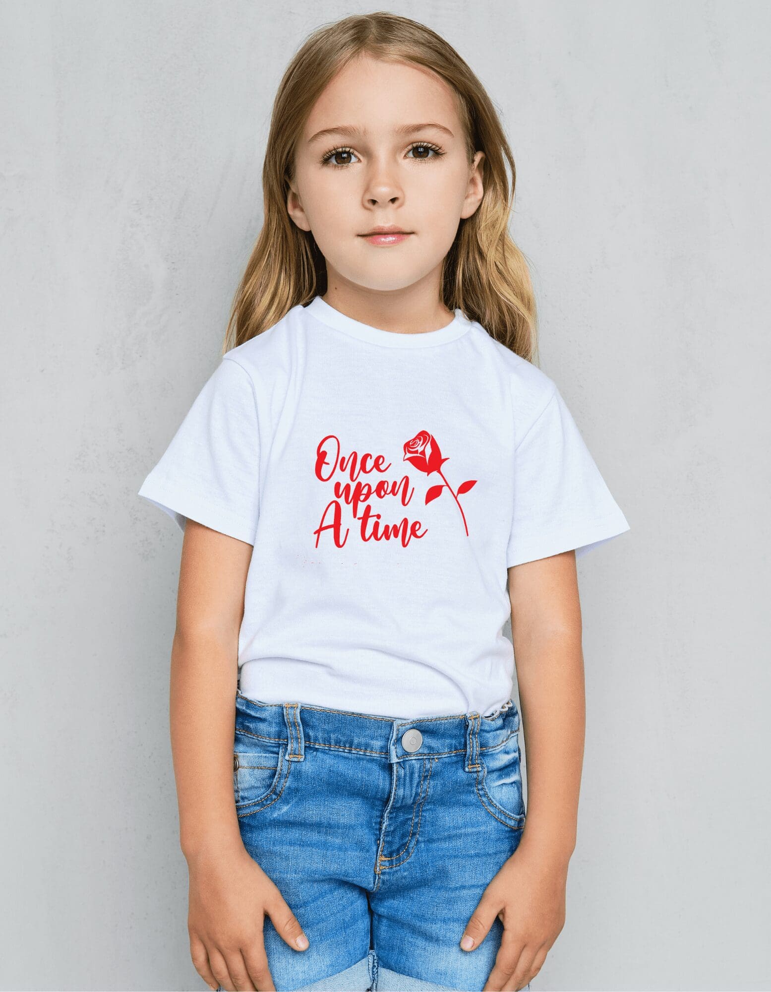 TendancedeSan vous propose ce T-shirt personnalisé fille – Once Upon a Time, notre enfant notre plus belle histoire.