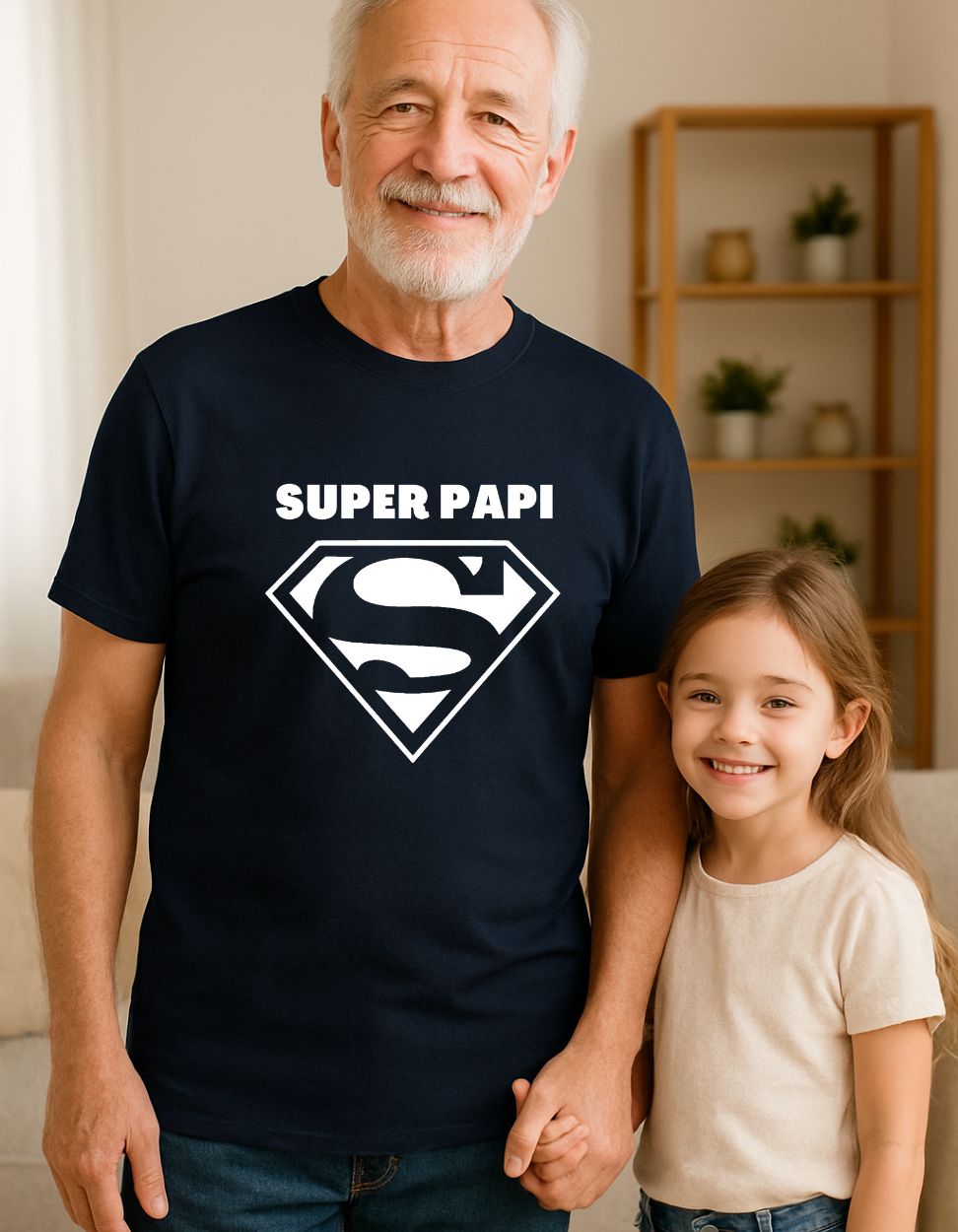 Votre grand-père n’a peut-être pas de cape… mais pour vous, il est un véritable Superman. Avec ce t-shirt personnalisé Super Papi, vous lui prouvez qu’il est plus qu’un papy : c’est un héros. Ajoutez son prénom ou un mot doux, et vous transformez un simple vêtement en souvenir unique.