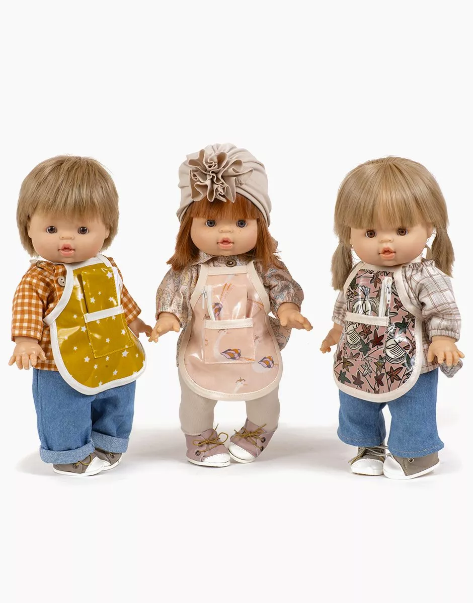 Set d’accessoires sur le thème de l’école « Back to school » pour poupées et poupons Minikane Gordis 34 & 37cm. Vendu dans son pochon sérigraphié. Cet ensemble comprend : – un tablier de peinture en coton enduit. – une mini-trousse d’écolier Talia en coton (8x4cm). Design, développement & confection accessoires en tissu MADE IN FRANCE. Design, development & tailoring of fabric accessories made in France.
