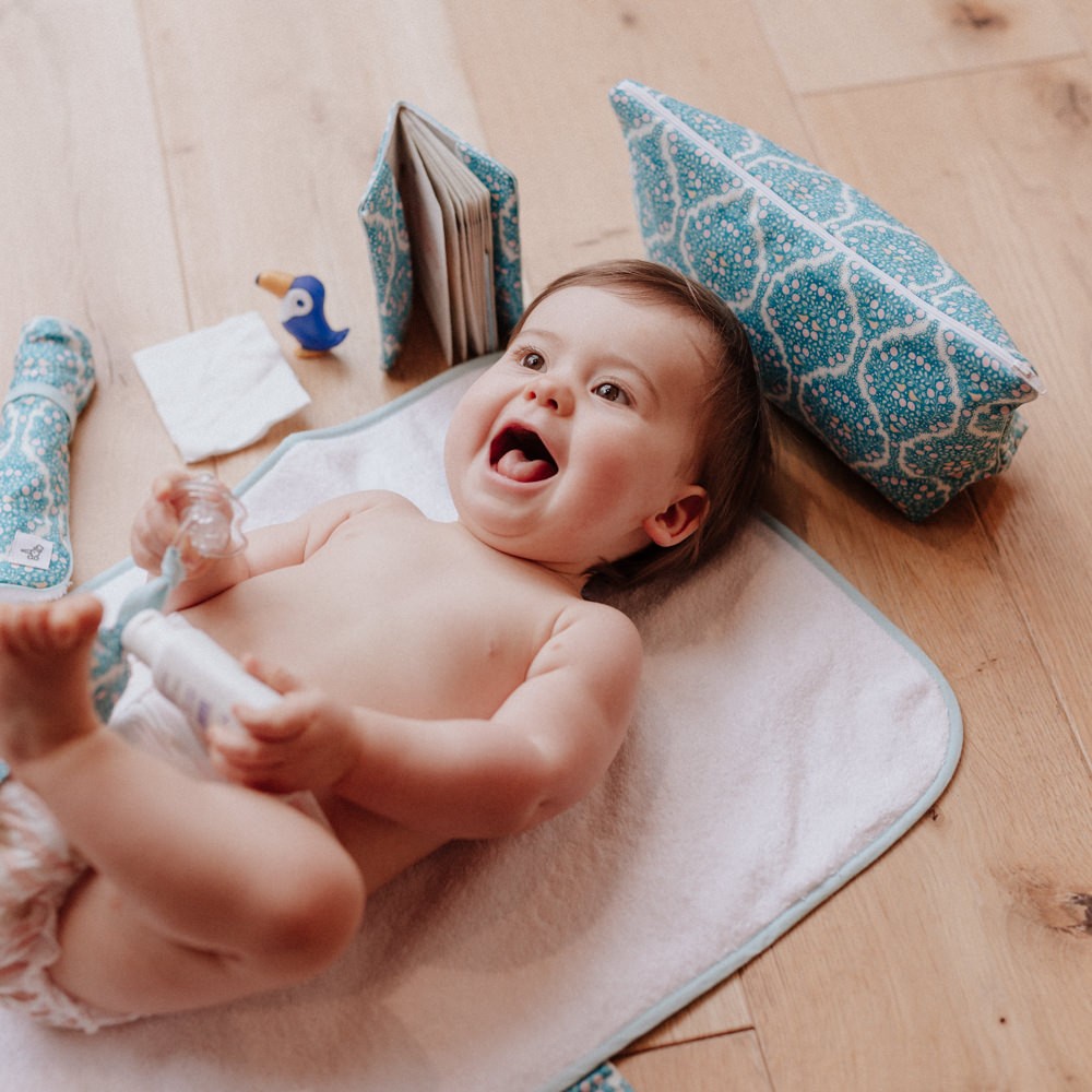 Un accessoire très utile en balade permettant de changer les fesses de bébé et de ne pas salir les sièges de la voiture par exemple, une doublure intérieure avec un tissu déperlant le rend imperméable sur le moment, il se plie et se transporte facilement grâce à sa jolie pression.