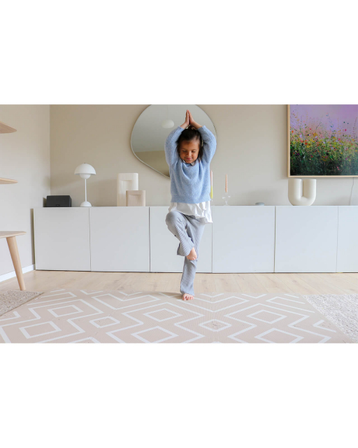 Ce tapis de haute qualité est très doux et sa surface est imperméable. Idéal pour jouer, apprendre à ramper, rouler et bien plus encore ! Polyvalent à utiliser pour d’autres exercices d’intérieur tels que le yoga, le Pilates et d’autres activités de jeu. Parce qu’ils ont un effet amortissant/adoucissant, ils conviennent également très bien pour une utilisation sous une balançoire/aire de jeu ou un toboggan.