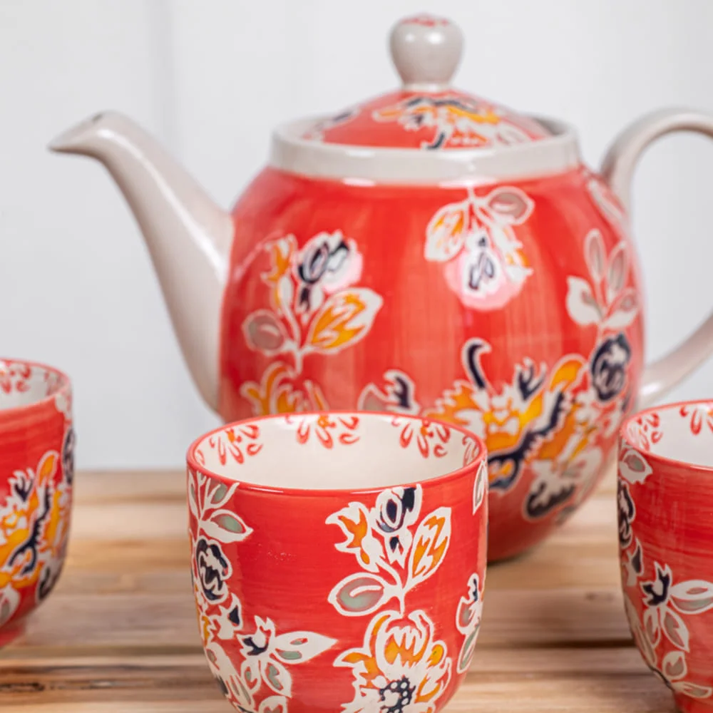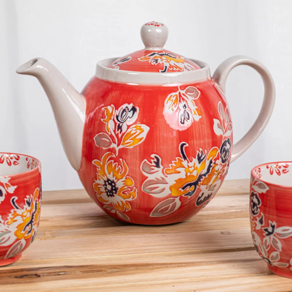 La théière avec filtre de 1L de la collection Ava est parfaite pour préparer et servir vos infusions avec style. Sa capacité généreuse permet de savourer vos boissons chaudes préférées tout en apportant une touche de charme à vos pauses thé. L’élégance de ses motifs floraux et sa teinte rouge vibrante en font un incontournable pour toute table accueillante.