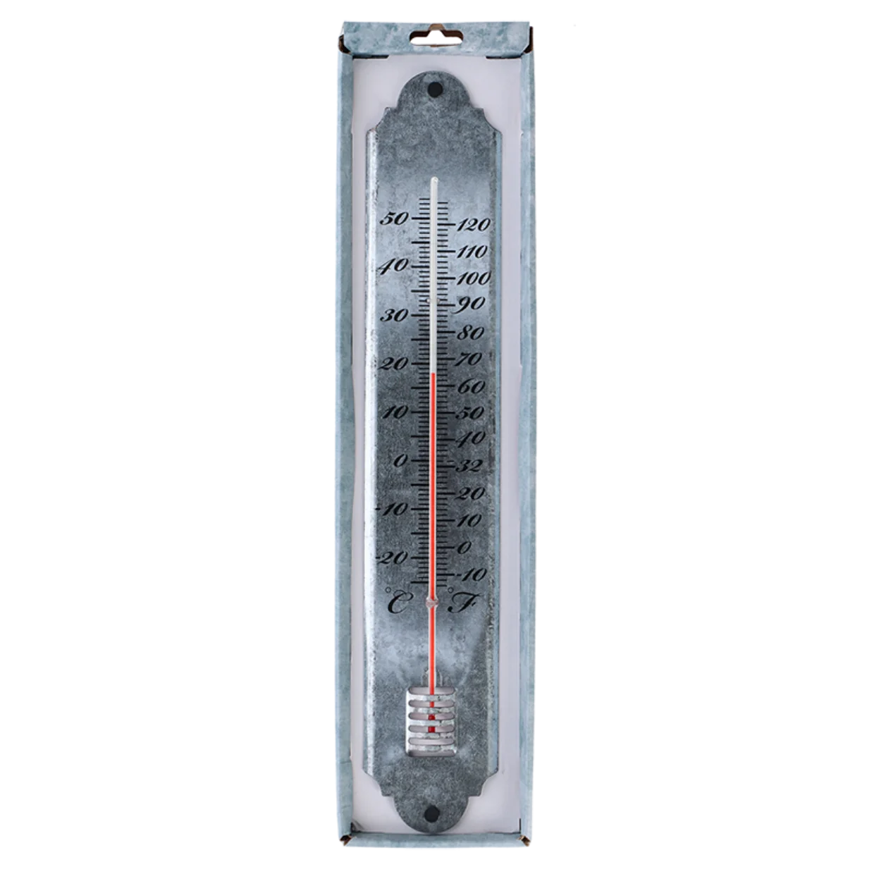 Thermomètre 50cm, Esschert Design. L’utilisation du zinc dans le jardin est une tradition ancienne, il est utilisé de différentes manières et pour différents articles.