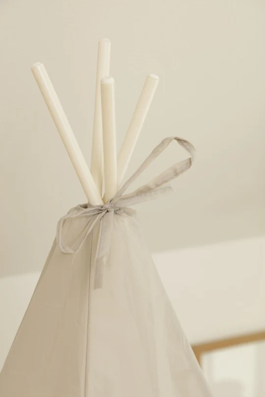 - Assurez-vous que les piquets en acier sont correctement installés dans le sol pour maintenir le tipi en place par temps venteux.
