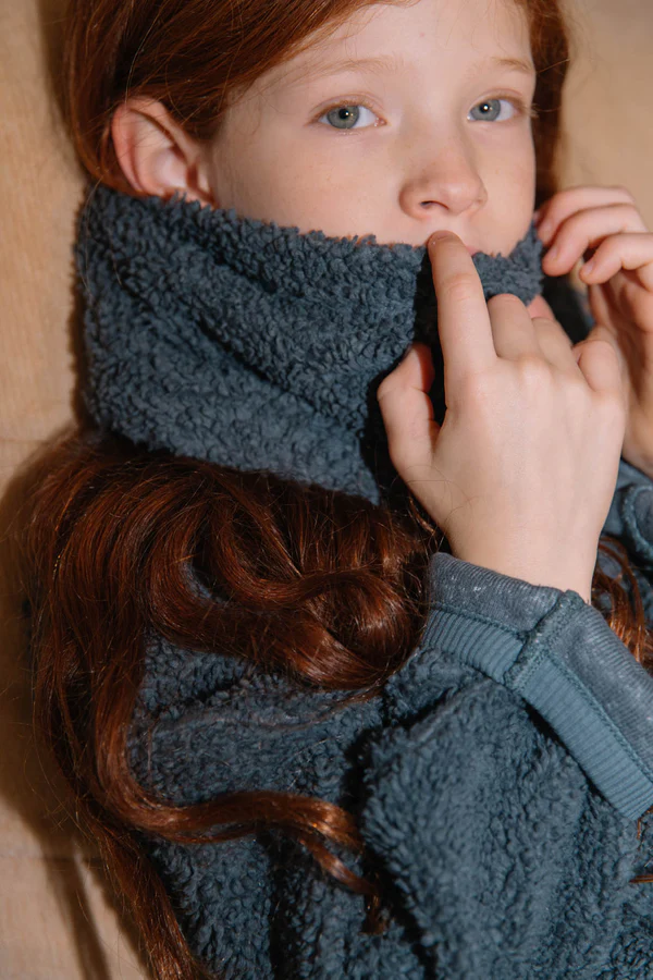 Le coloris bleu gris s’accorde facilement avec les manteaux, parkas et bonnets de la collection Studio Bohème. L’étiquette décorative cousue au dos signe discrètement la pièce. Ce tour de cou enfant Tom complète parfaitement une tenue d’hiver, tout en restant pratique et confortable.