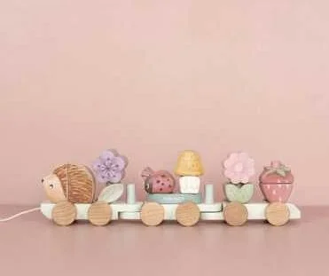 Le train à blocs Hérisson – Fairy Garden de Little Dutch est un jouet en bois 2-en-1 idéal dès 12 mois. Composé de 3 wagons et de 15 blocs colorés, il associe jeu à tirer et encastrements pour stimuler motricité fine, coordination et imagination. Bébé pourra promener son train dans la maison et inventer des histoires féeriques avec le hérisson, la fraise et les jolis éléments du jardin enchanté.