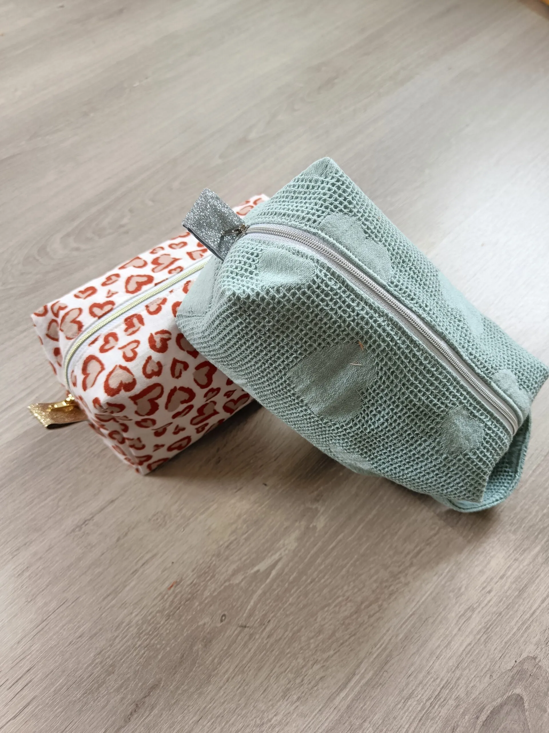 Trousse de toilette bébé ou femme, rectangulaire. Taille 20 x 10 x 10 cm.