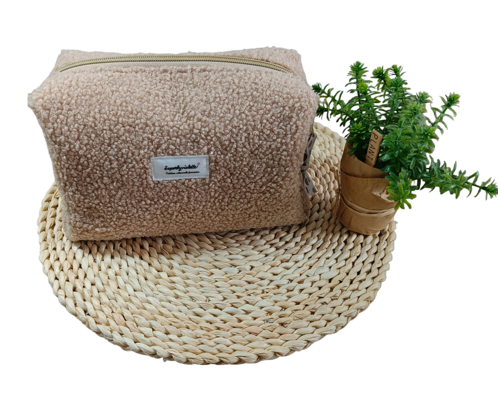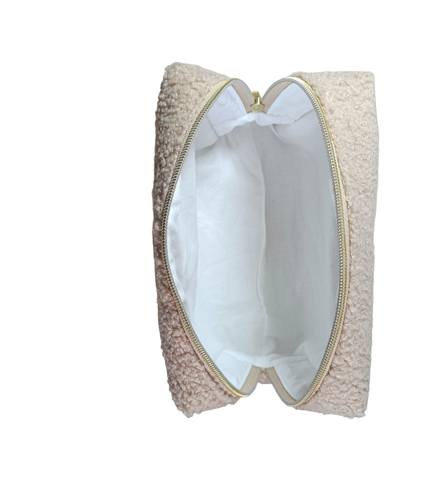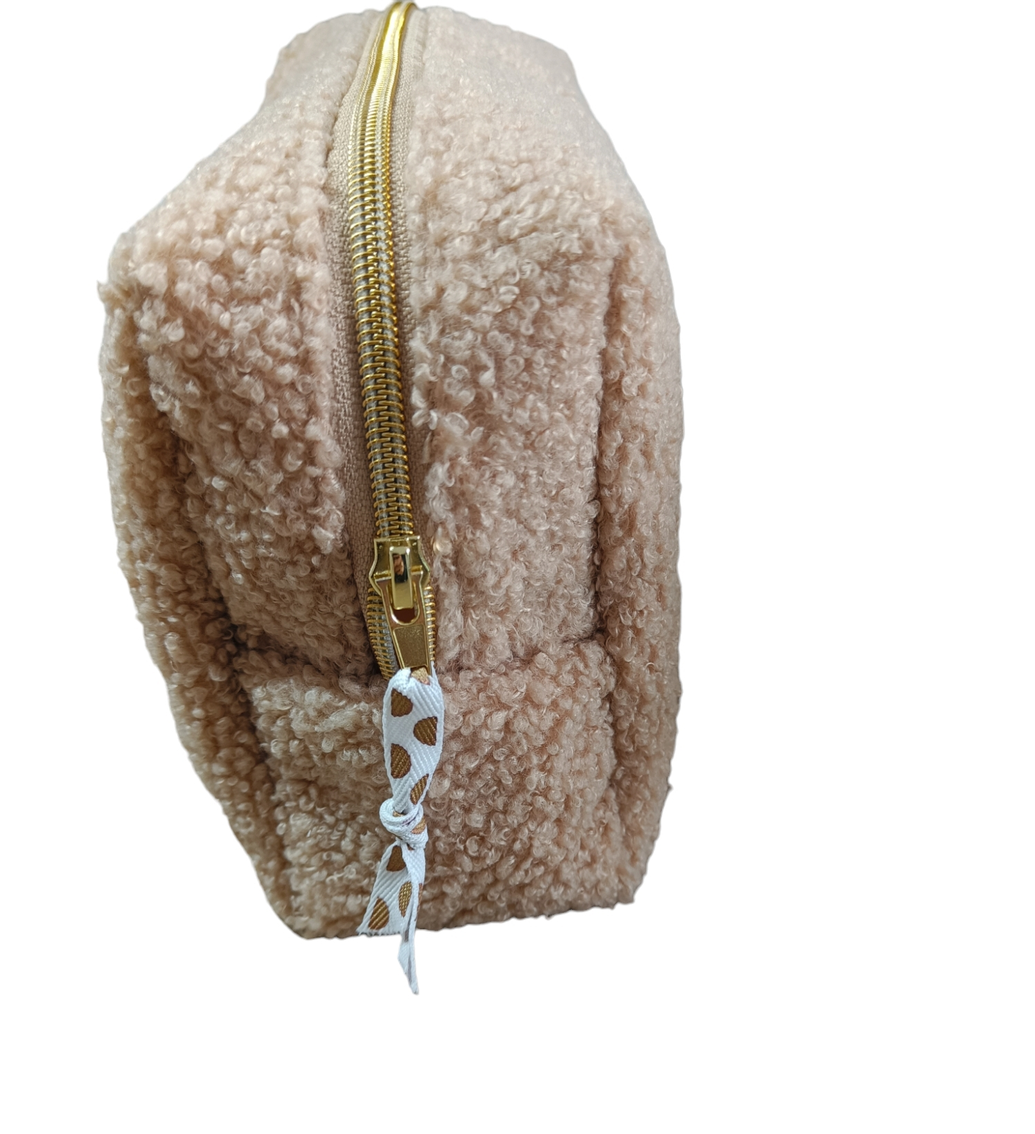 Trousse de toilette teddy femme, en tissu teddy bouclette.