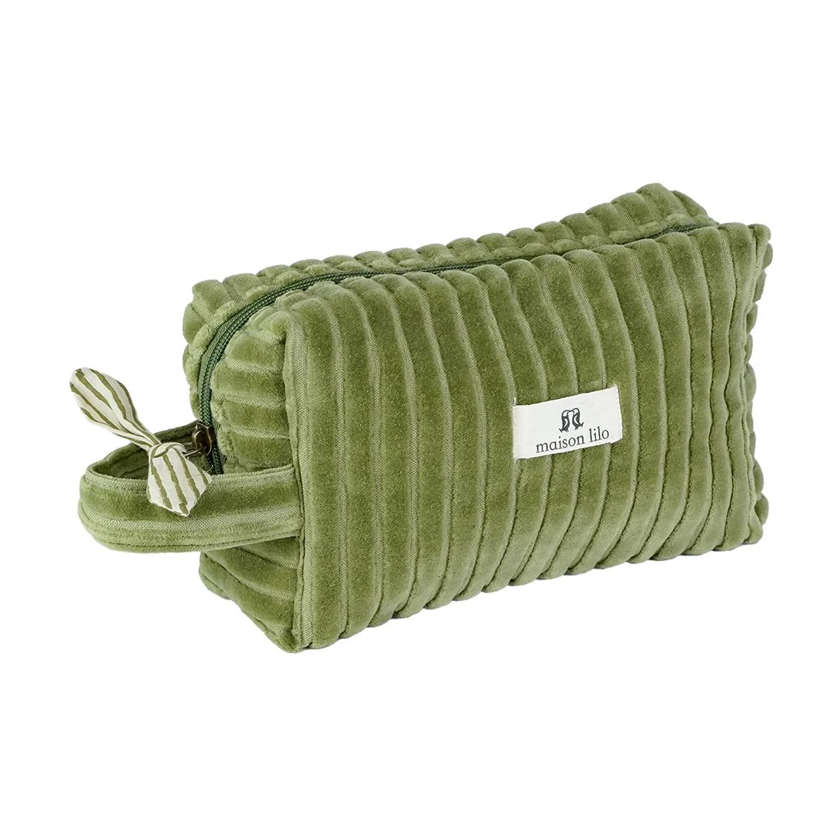 Trousse de toilette velours côtelé Vert, Maison Lilo