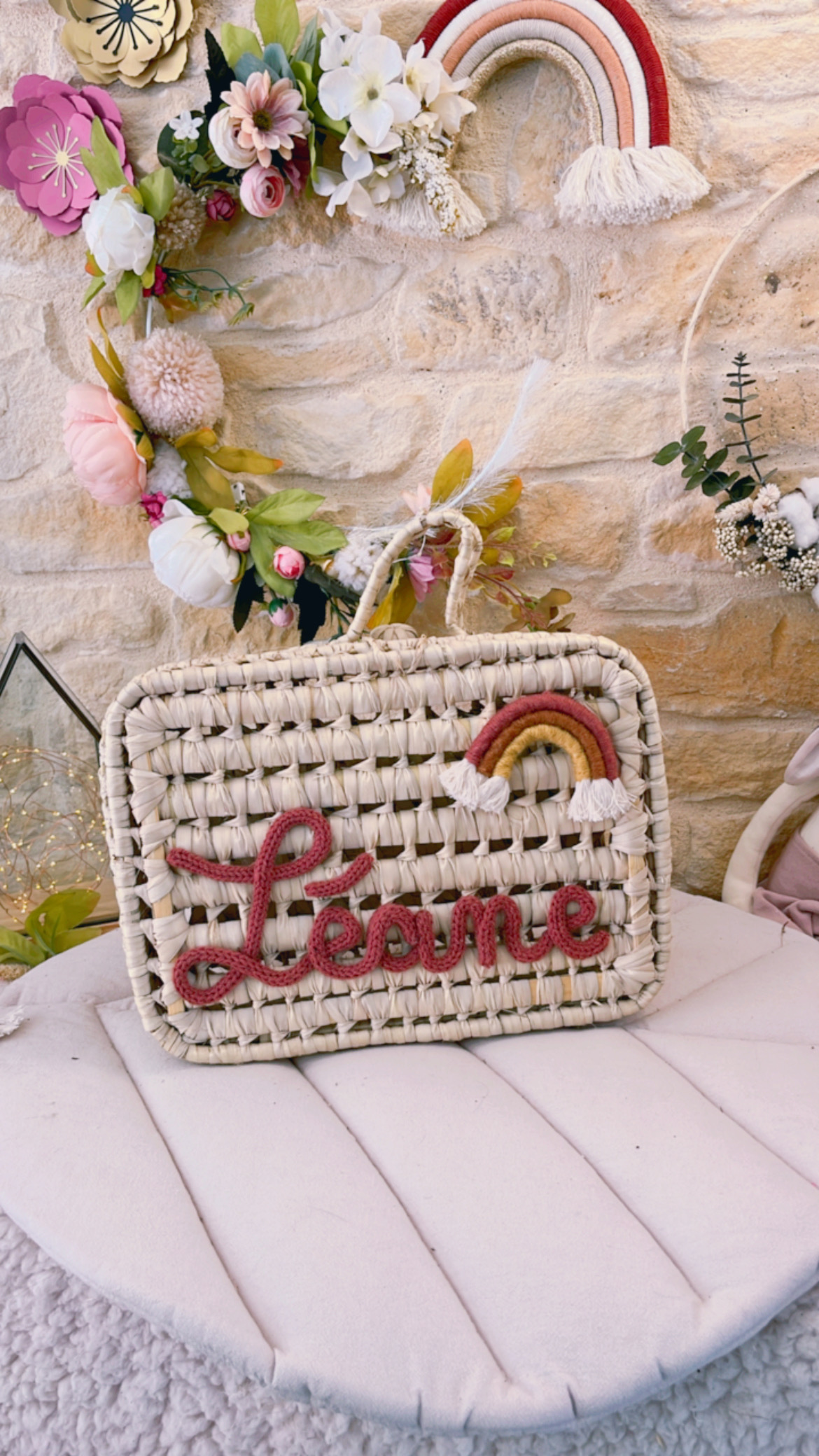 Valisette à souvenirs avec arc-en-ciel en macramé Petite valisette à souvenirs en feuille de palme tressé. Idéal pour la décoration mais surtout pour y ranger tous les plus beaux souvenirs depuis la naissance de bébé. Dimensions 30cm de long, 22cm de haut et 12cm de large Prénom et arc en ciel en laine fixés. Article […]
