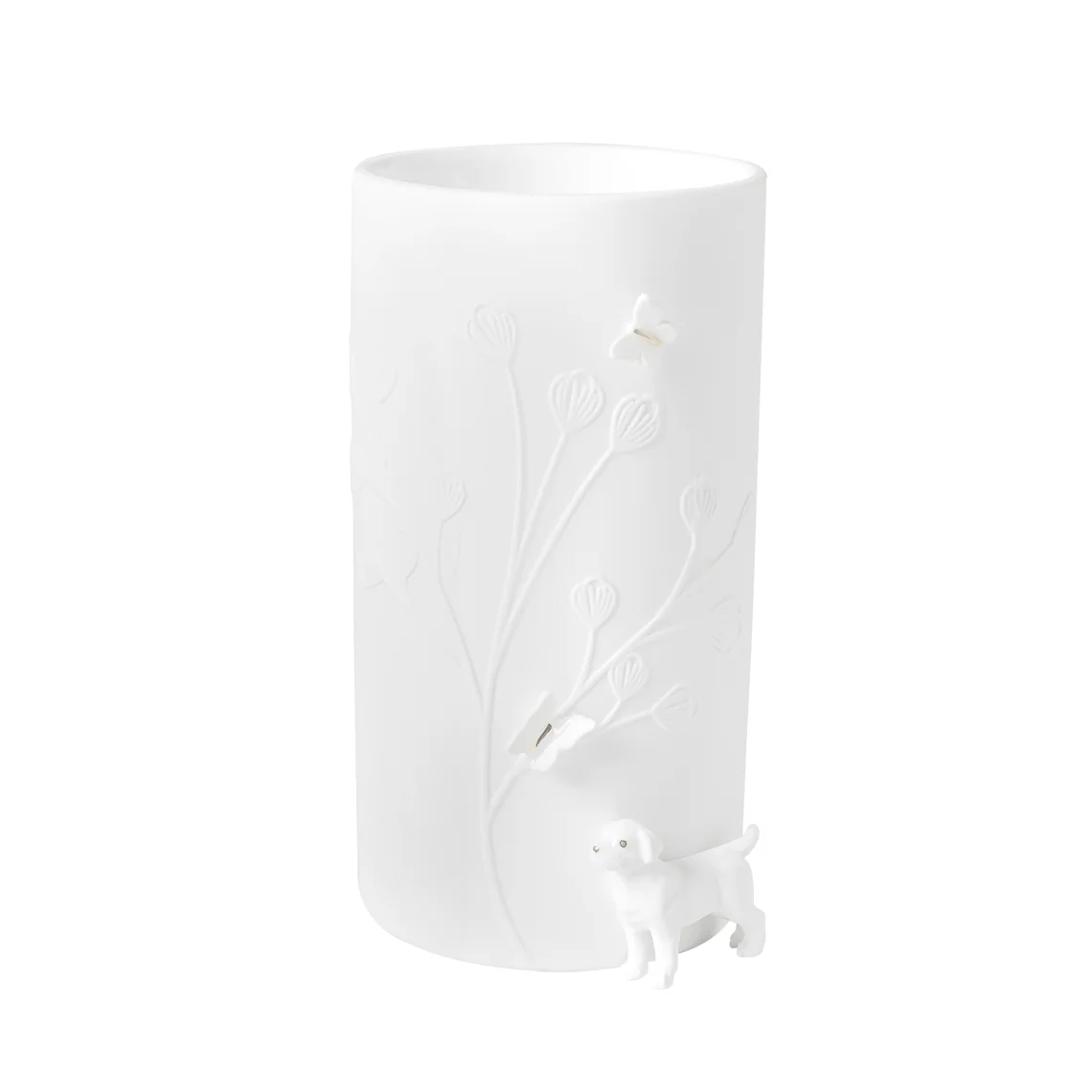 Un vase en porcelaine blanche orné d’un petit chien en relief – une pièce poétique et décorative qui allie minimalisme et tendresse. Hauteur : 17 cm – Diamètre : 9 cm