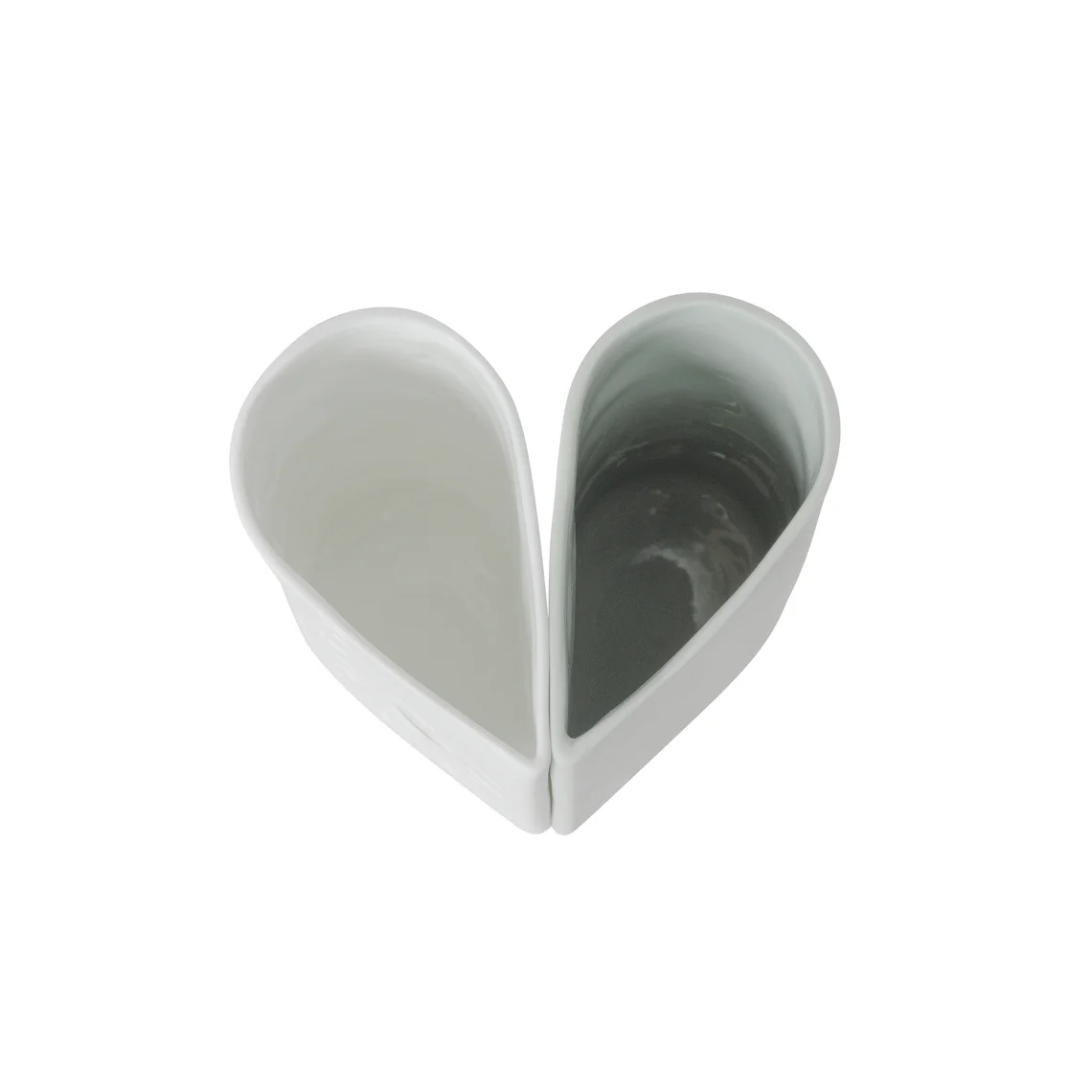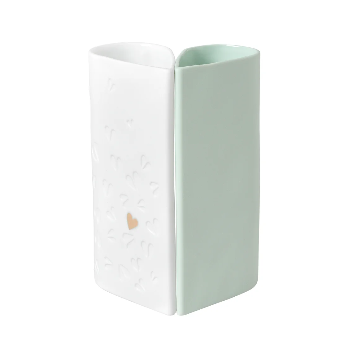 Un vase en porcelaine minimaliste et poétique, orné d’un petit cœur doré. Signé Räder, pour sublimer chaque fleur avec émotion. L 7,5 cm x H 13 cm x P 4,5 cm