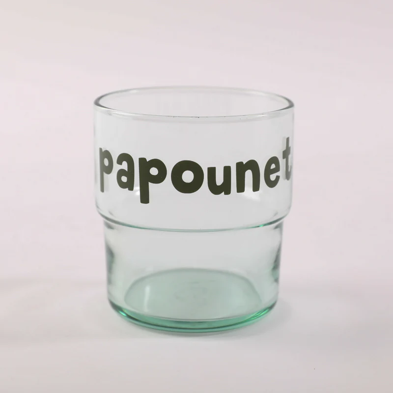 Verre sérigraphié Papounet Verre sérigraphié – 28 cl. Empilable, lavable au lave-vaisselle. Sérigraphié en France. Vendu à l’unité. Parfait pour toute la famille !