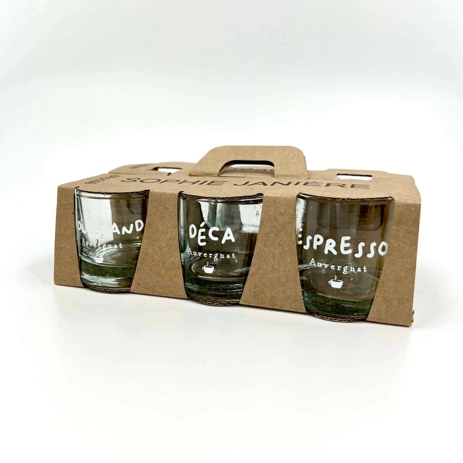 Set de 6 Verres à Café Auvergne, Sophie Janière Rien de tel qu’un petit café de chez vous, ou alors pour rappeler vos jolies vacances en Auvergne ! Chaque tasse en céramique blanche est sérigraphiée d’un texte blanc : GOURMAND Auvergnat DECA Auvergnat EXPRESSO Auvergnat CAFE Auvergnat SERRE Auvergnat CORSE Auvergnat