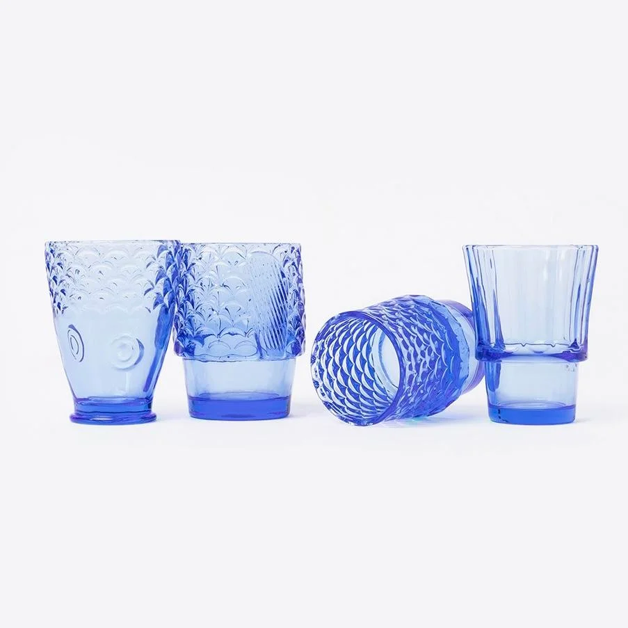 Ensemble de 4 verres empilables bleus KOIFISH. Un ensemble surprenant de 4 verres de formes différentes qui, une fois empilés, créent l’image d’un poisson.