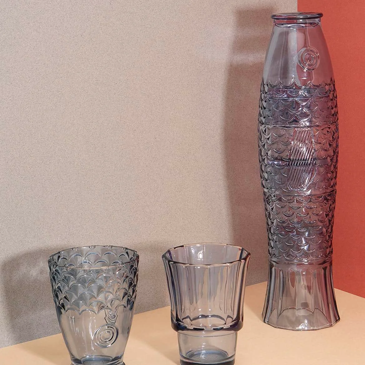Verres Empilables Poisson Bleu, DOIY. Verres empilables qui s’assemblent pour créer la forme d’un poisson bleu, servant de pièce décorative fonctionnelle et peu encombrante.