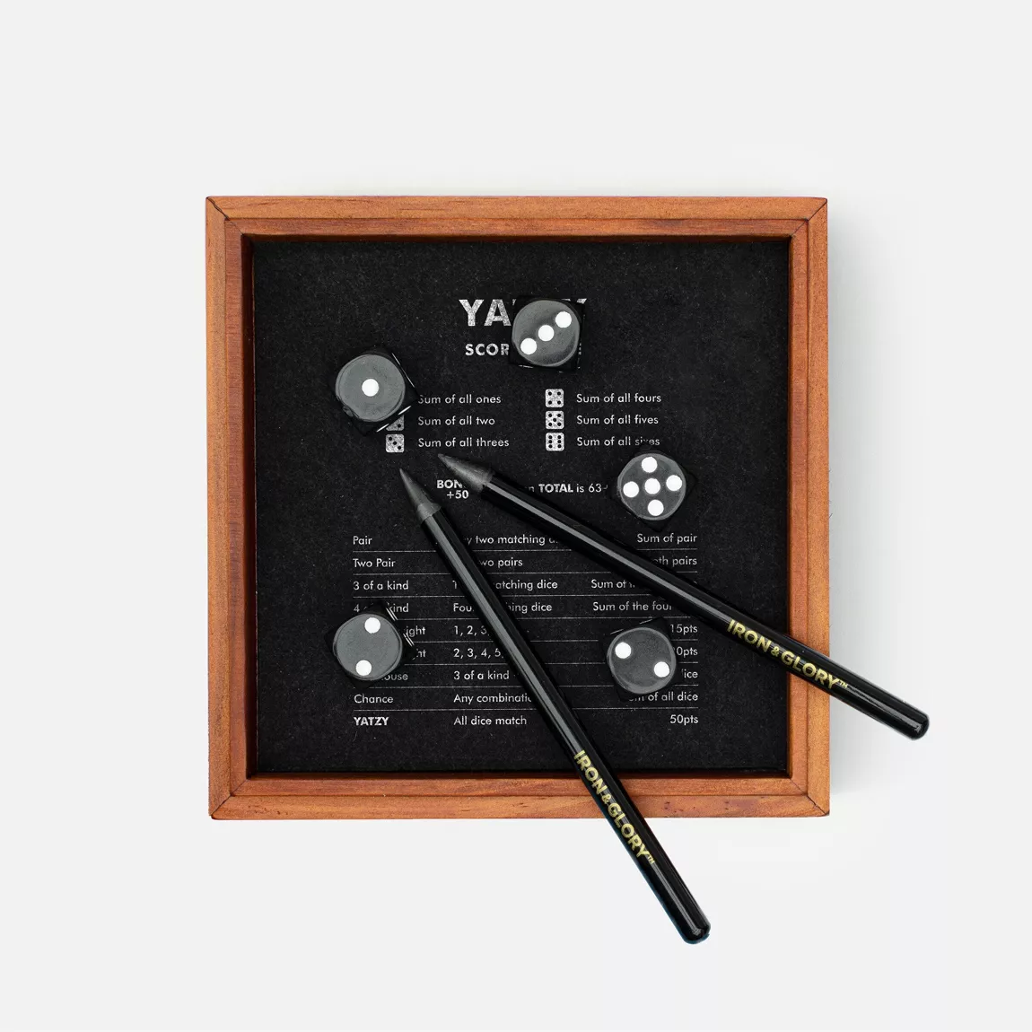 - Design sophistiqué : Une version moderne et stylée du classique Yatzy.
