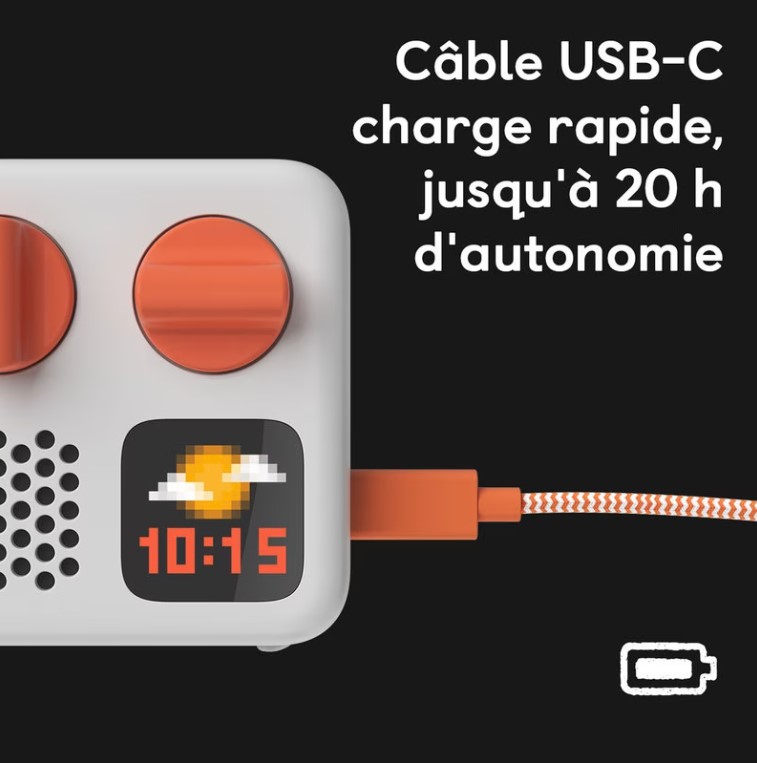 Yoto mini possède une horloge pédagogique grâce un repère jour et nuit : soleil ou lune. Votre enfant aura un repère pour savoir s’il est l’heure de se lever ou non. Ce lecteur audio est également rempli de podcasts gratuits, radios, sons pour s’endormir.